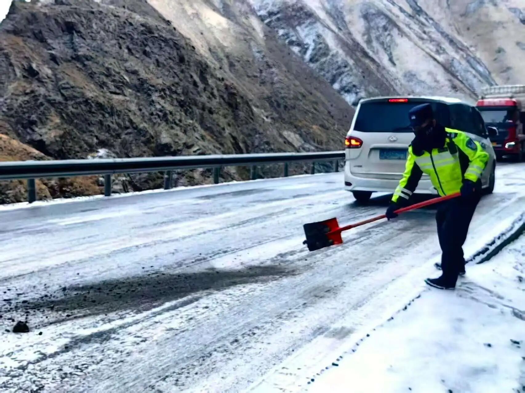 行动中,全体民辅警结合路段实际情况采取撒盐融雪、铺土防滑等多种有效措施,全力清除路面积雪与暗冰。同时,民辅警在重点路段加强巡逻值守,及时发现并救助被困车辆,积极引导过往车辆安全通行,全力预防和减少道路交通事故发生,切实保障群众生命财产安全。
