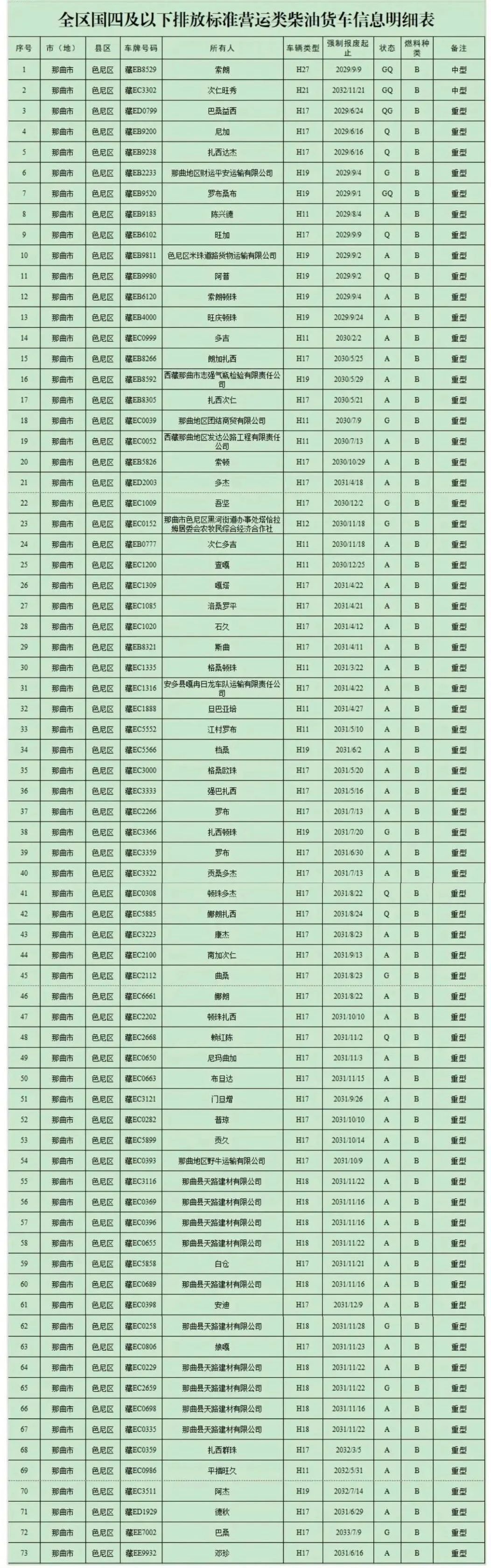 关于色尼区2025年度老旧营运货车报废更新车辆信息的公告
