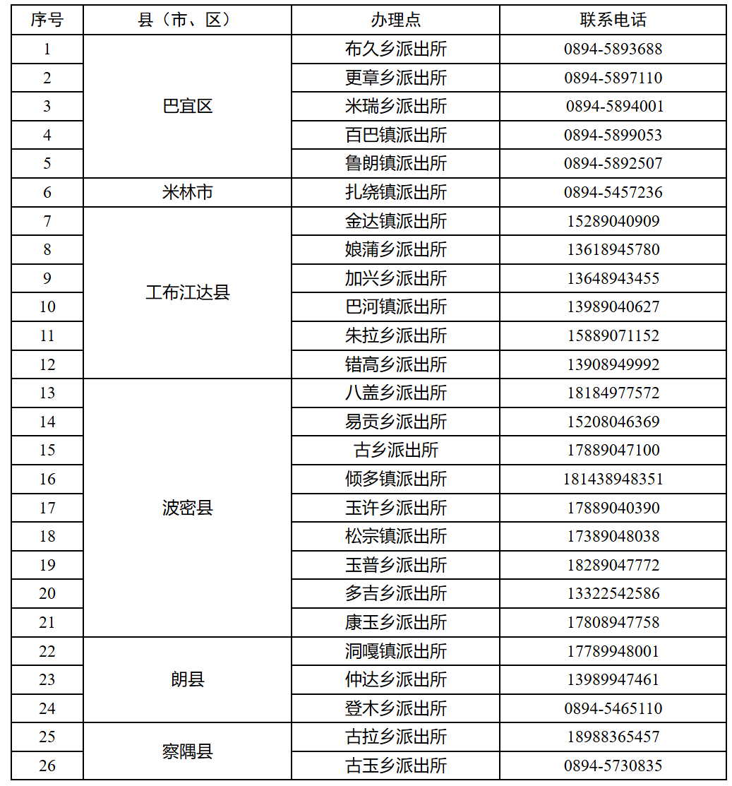 为进一步深化公安“放管服”改革,方便区内外群众就近、快捷办理《中华人民共和国边境管理区通行证》(以下简称《边境通行证》),最大限度满足群众出行需求,经批准,即日起在林芝市增设26个边境通行证办理点。现将有关事项公告如下: