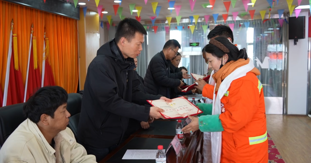 为弘扬“宁愿一人脏,换来万家净”的环卫精神,向长期坚守在一线的城市美容师致以敬意,10月26日,色尼区举办环卫工人表彰活动,将关怀与温暖送到环卫工人心坎上,现场节日氛围热烈浓厚。活动为20余名“优秀环卫工人”“最美保洁员”颁发荣誉证书,用表彰致敬劳动者的坚守。
